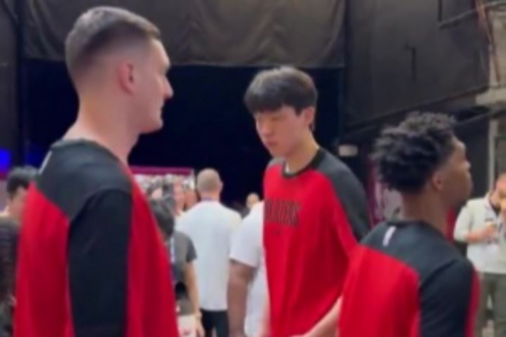 杨瀚森夏联首秀,开拓者对阵勇士,比赛即将开打。